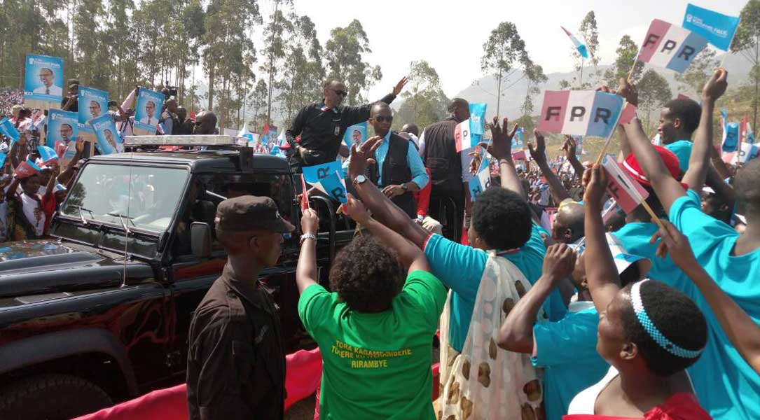 At all campaign rallies, Kagame the flag bearer of Rwanda Patriotic Front party allows supporters to recount testimonies of success stories under his leadership.