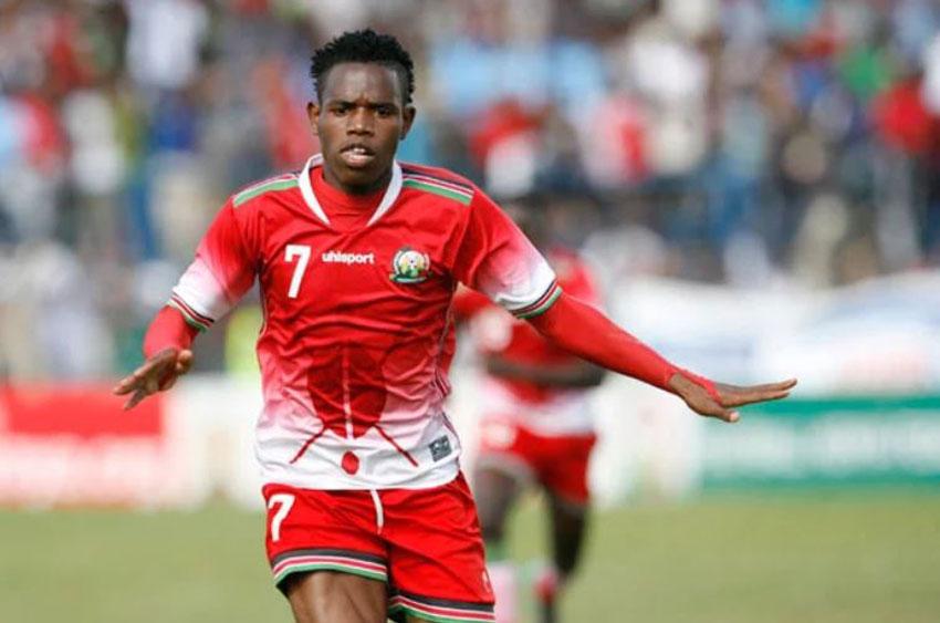 Harambee Stars winger Ovella Ochieng celebrates his goal against Zanzibar during the Cecafa Senior Challenge Cup final match on December 17, 2017 at Kenyatta Stadium, Machakos. NMG/photo