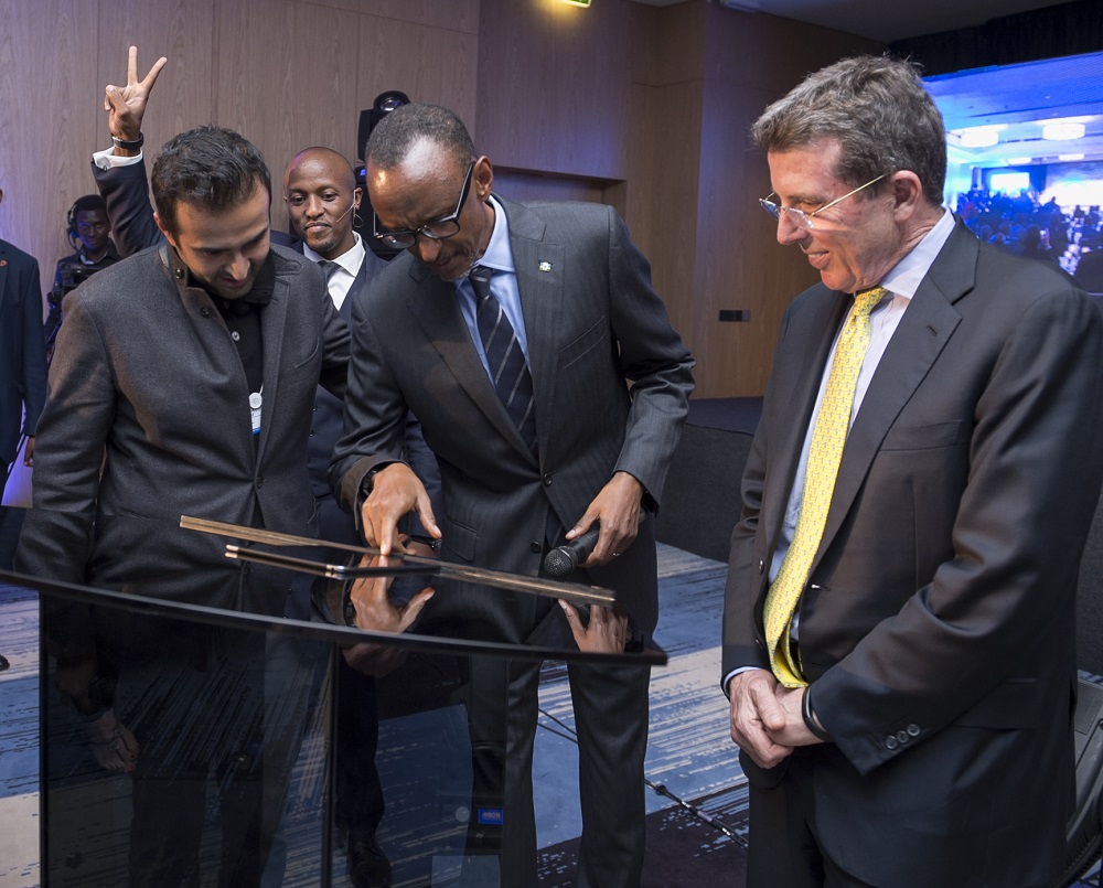President Kagame with Ashish J. Thakkar, Mara Group Founder, at the BPR Atlas Mara Brand Reveal in Kigali during the World Economic Forum on Africa on 11 May 2016