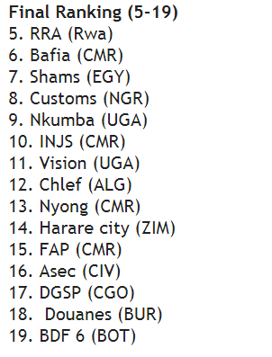 Rwanda Revenue Authority have ended their continental bid ranked fifth in Egypt.