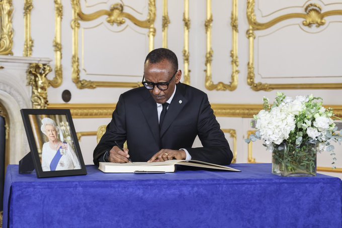 President Kagame signs the book of condolences at Lancaster House ahead of Her Late Majesty Queen Elizabeth II’s funeral tomorrow