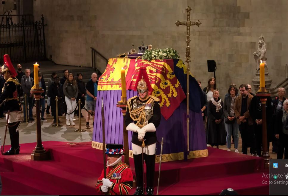 The coffin of Queen Elizabeth in Westminster Hall