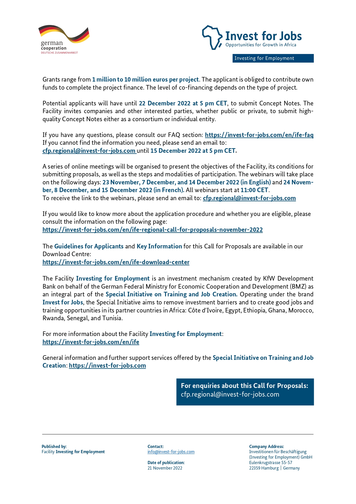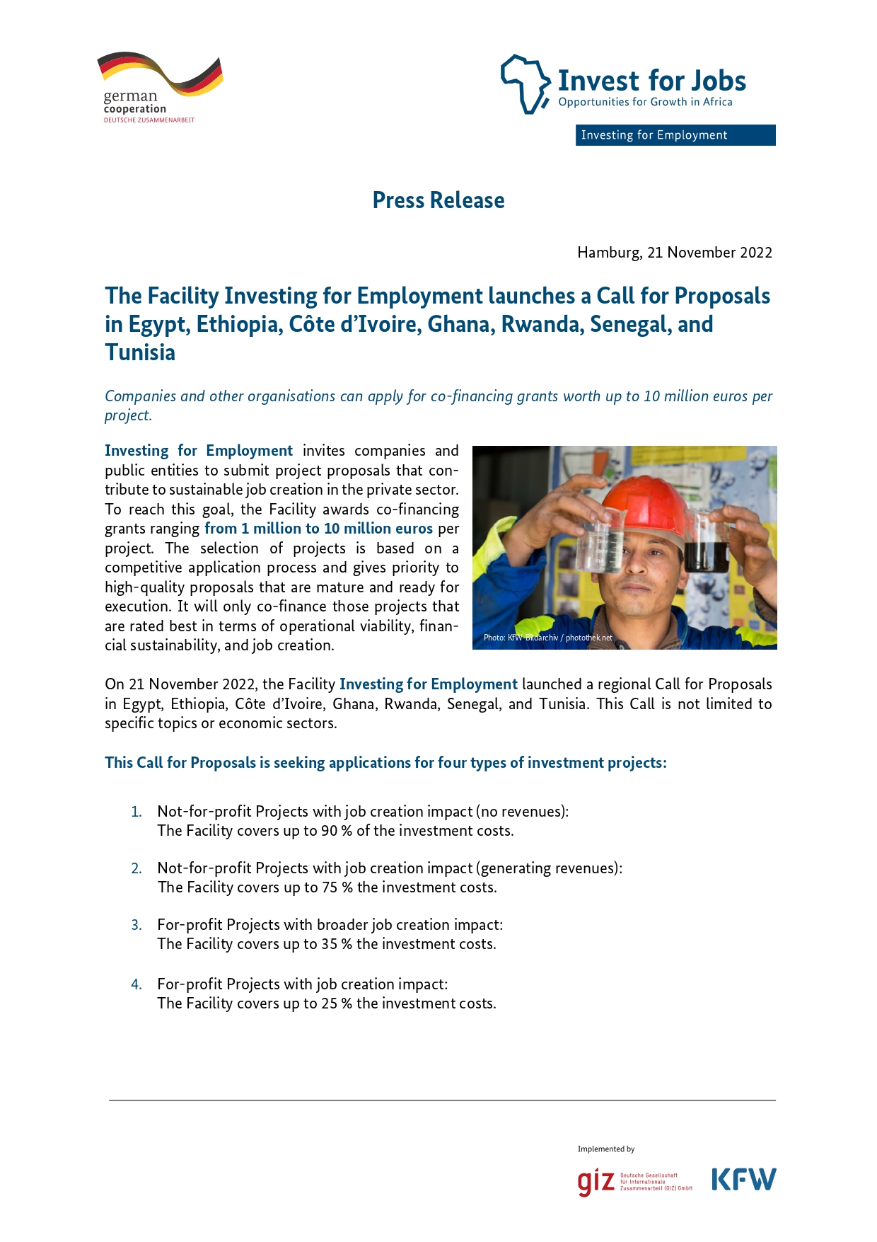 Companies The Facility Investing for Employment Launches A Call for Proposals by KT Press Reporter November 22, 2022 written by KT Press Reporter November 22, 2022 2.5K Visited 82 times, 1 visit(s) today latestnews 0 comments 0 FacebookTwitterPinterestEmail KT Press Reporter previous post World Cup 2022: Shock As Saudi Arabia Defeats Messi’s Argentina next post Fail Or Thrive: Young Entrepreneurs Tipped On Scaling Business Ideas Beyond ‘Survival’ You may also like Mövenpick Hotel Kigali Opens Its Doors in Rwanda,... December 9, 2025 Shora I Rwanda: BK Engages Rwandans Abroad to... December 2, 2025 Bank of Kigali Boosts Agriculture and Livestock Sector... November 29, 2025 How MTN Rwanda Plans to Connect the Next... November 5, 2025 MTN Rwanda Market Share Grows to 64% November 4, 2025 Rwanda Eyes A Zero Imported Powdered Milk October 10, 2025 NCBA Bank Rwanda Expands Footprint to the Western... August 9, 2025 Nearly 500 People Employed by Zaria Court Kigali July 26, 2025 Nick Barigye Named CEO Crystal Ventures, Rwanda’s Most... July 15, 2025 Access Bank Expands Loan Portfolio Under Gira Access... July 11, 2025