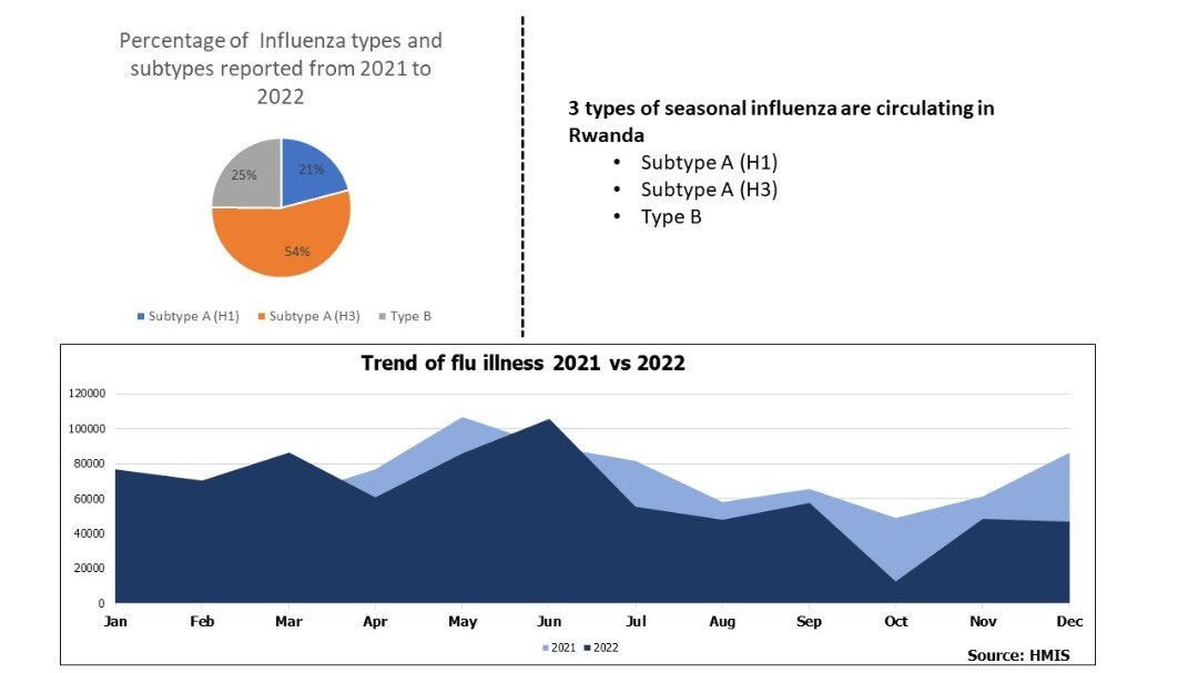 “Our data show an increase in seasonal flu cases during rainy season. National Laboratory surveillance testing shows that H3N2 influenza virus remains the most prevalent in Rwanda,” the Ministry said.