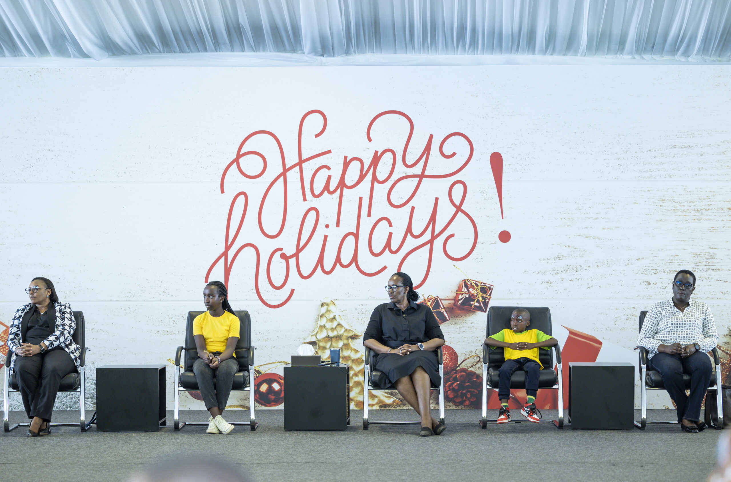 Yes, it was the annual Christmas children’s party, hosted by Rwanda’s first lady. Three little people, or minie me-s, if you prefer, are selected from each one of the country’s districts, now twenty-seven, plus the city of Kigali. The basis for selection varies. Those selected, are the brightest and most gifted pupils, or they are from disadvantaged families, or have some form of disability. Each group is accompanied to Urugwiro village, by their district’s vice-mayor, in charge of social affairs. There they are joined by their peers whose parents are members of staff at Urugwiro.