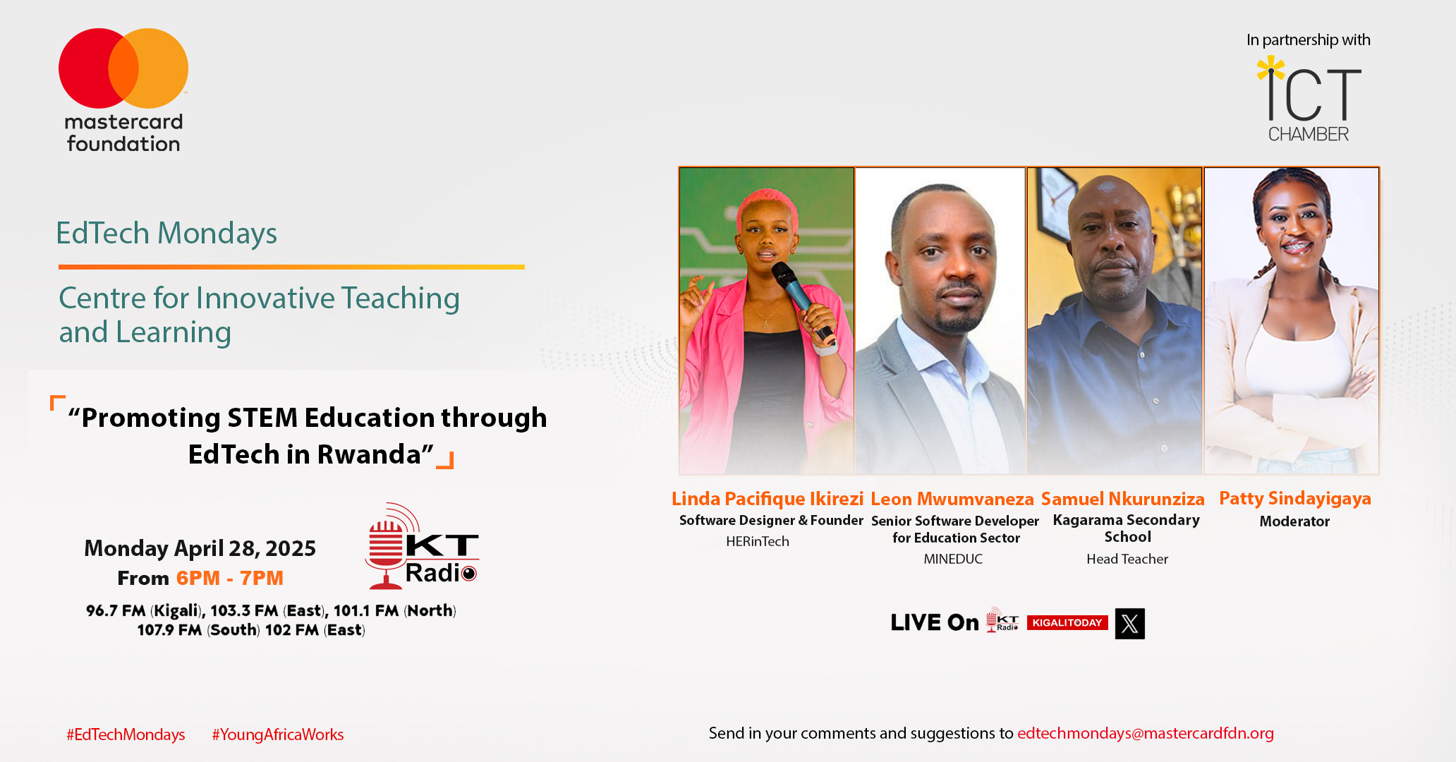 EdTech Mondays is a monthly talk show sponsored by the Mastercard Foundation Center for Innovative Teaching and Learning in ICT, in collaboration with the ICT Chamber Rwanda.