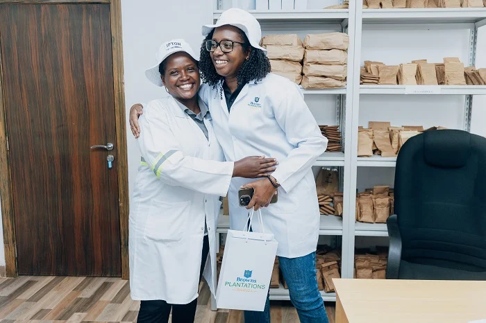 In Nyaruguru, Dr. Karusisi visited the Brown Plantations tea factory in Kibeho to observe the full processing chain from tea fields to the final product. She commended clients for their role in driving local development and assured them of BK’s continued support.