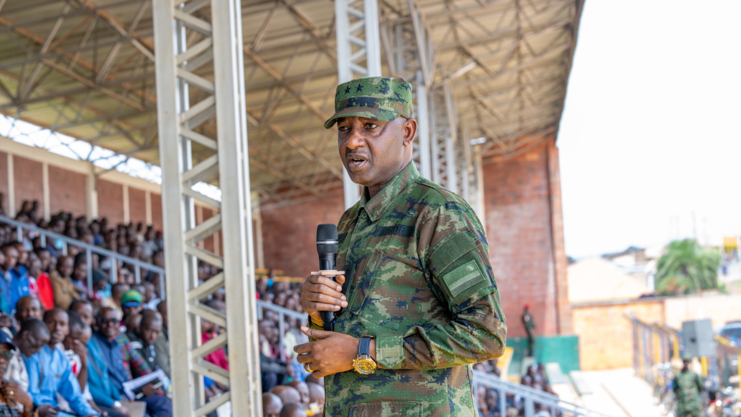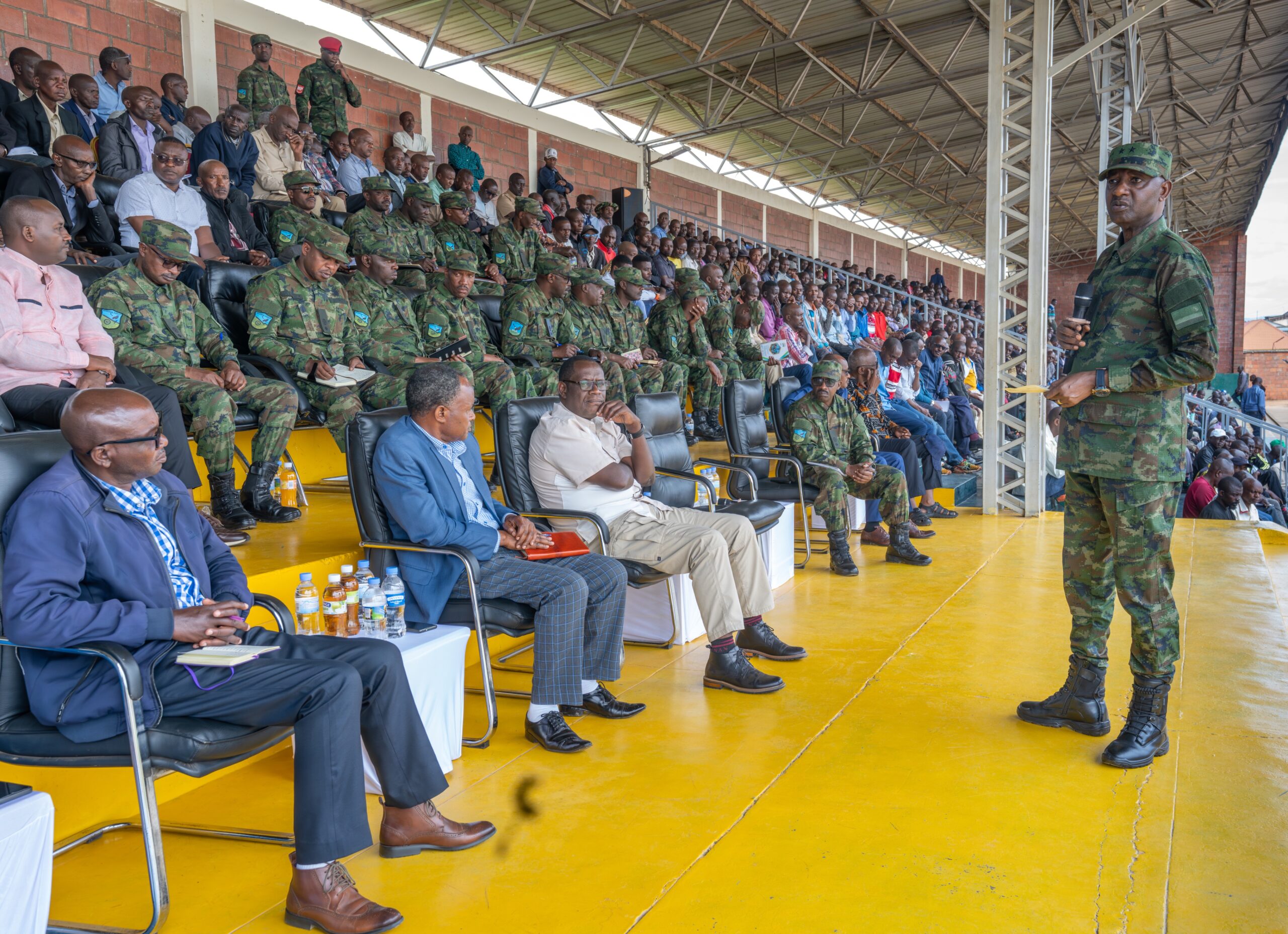 The Rwanda Defense Force (RDF) Chief of Staff of the Reserve Force, Major General Alex Kagame, met with reservists from Kamonyi, Muhanga, and Ruhango districts in the Southern Province to address their concerns and provide updates on RDF projects for their development and welfare.