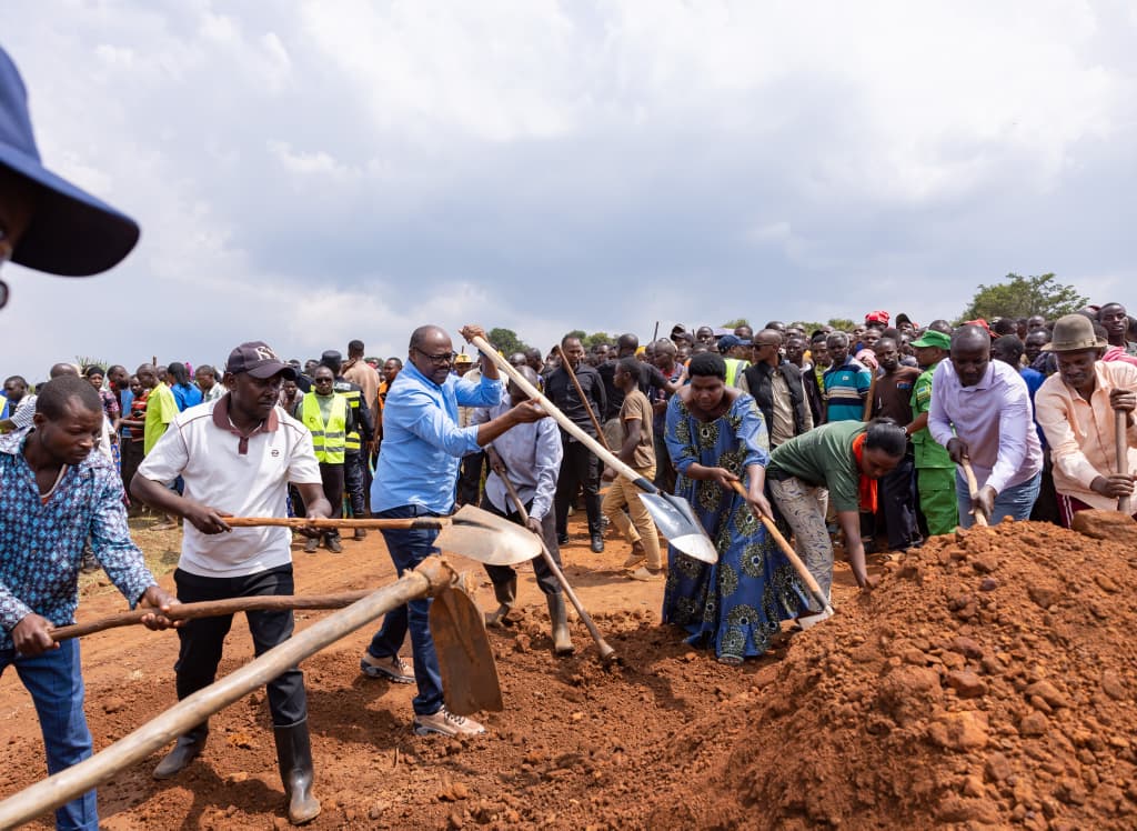 Today, Prime Minister D. Justin Nsengiyumva joined residents of Gahini Sector in Kayonza District for the monthly Umuganda community service to construct a maram road that will improve farmers’ access to markets.