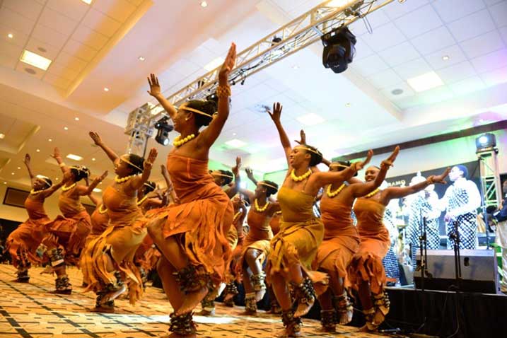 Traditional dancers dancing performing ikinimba