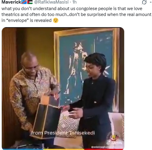 “Hariana Verás… receiving a gift from Tshisekedi. Plus the millions of dollars from the DRC that she received to buy her. She will never report that drones from the Tshisekedi regime are bombing civilians in Minembwe and Masisi,” commented Daniel Mucyo.