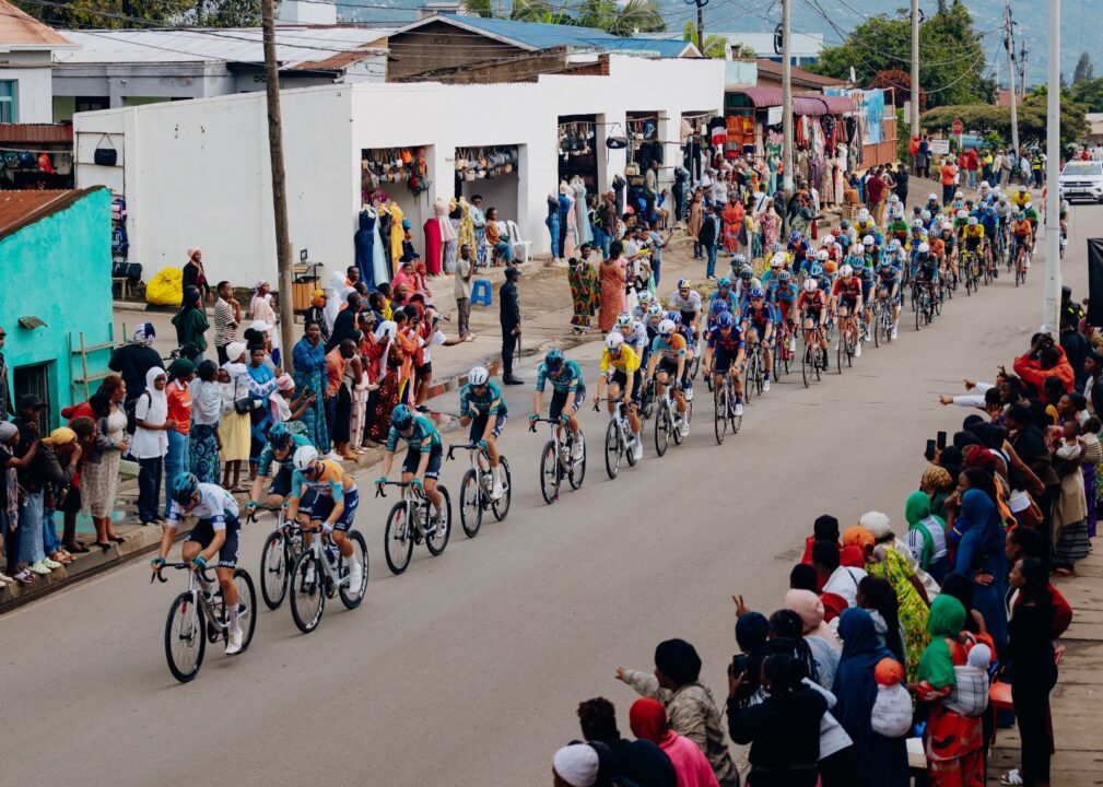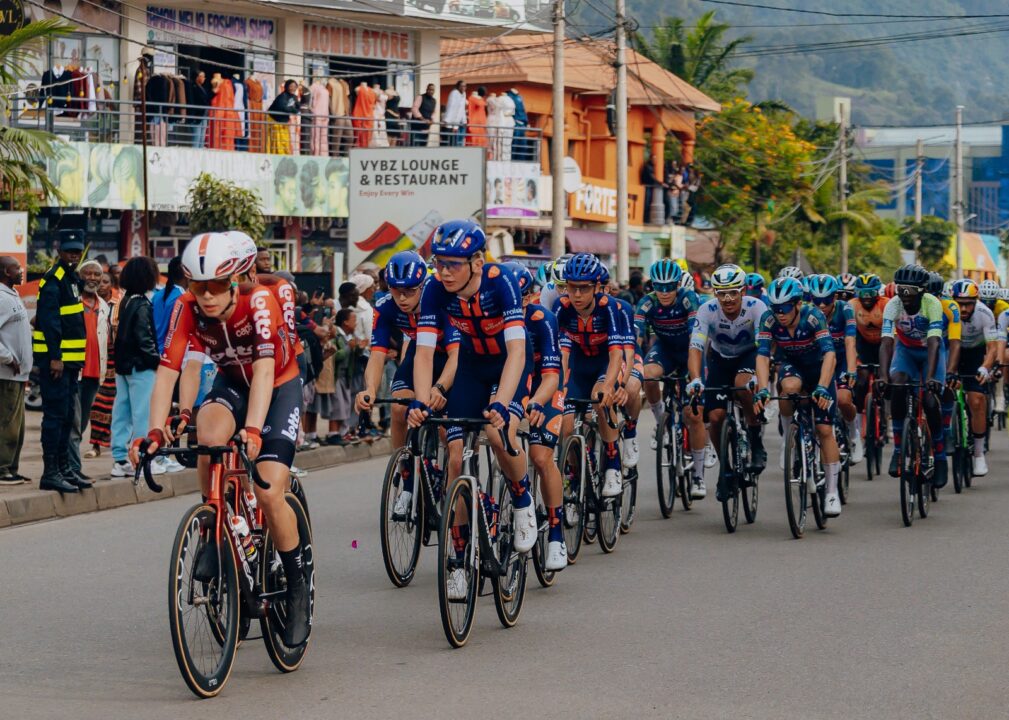 Riders roll through the streets of Rubavu district during stage five of the 2026 Tour du Rwanda.