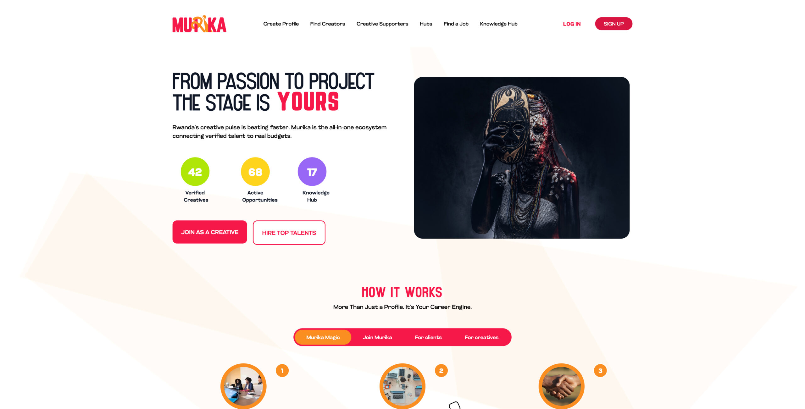 Built as a structured ecosystem not a social network MURIKA brings together verified creative profiles, professional portfolios, a transparent opportunity marketplace, community collaboration spaces and practical industry resources.