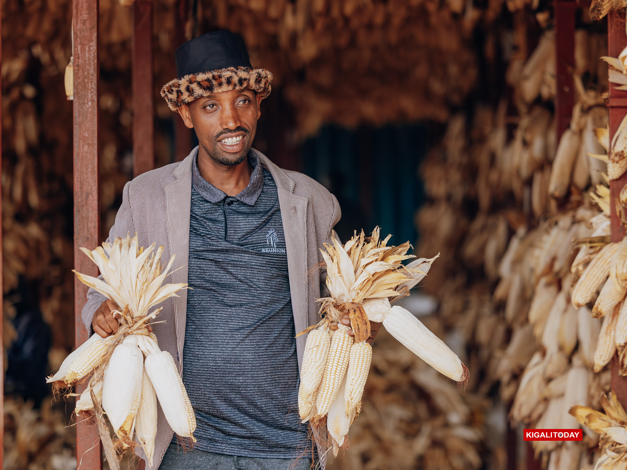 A young entrepreneur displays freshly harvested maize, reflecting a shift from dependency to productivity as refugees embrace agriculture and small-scale agribusiness as pathways to self-reliance.