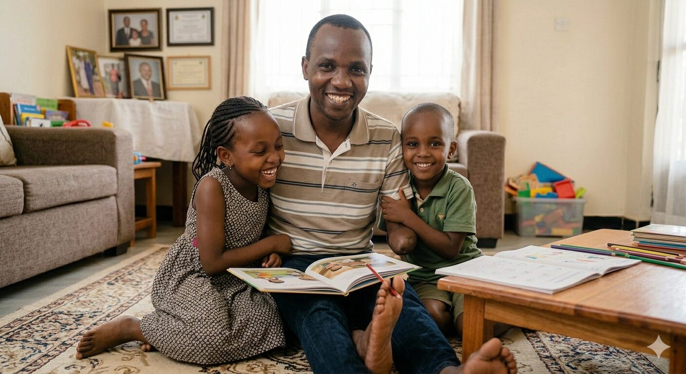 Beyond the office, Twagirimana’s life is defined by the quiet joys of a life fully lived. In 2017, he married a former schoolmate, and today they are raising two children. At home, he embraces fatherhood with a blend of warmth and creativity, guiding his children through their schoolwork and the small moments of everyday life. While he may not carry them in his arms, he has found his own language of closeness.
