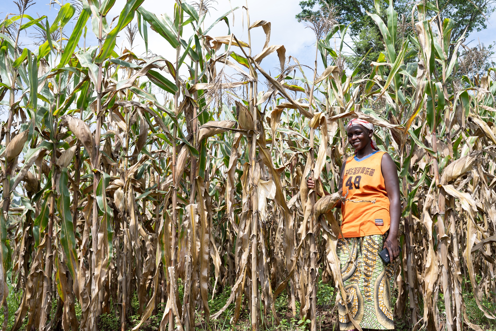Adeline Gwizimpundu, a farmer from Kayonza District, stands proudly in her maize field—once limited by lack of land and inputs, she now grows more, earns more, and supports her family and community, embodying the potential of women farmers across Rwanda.