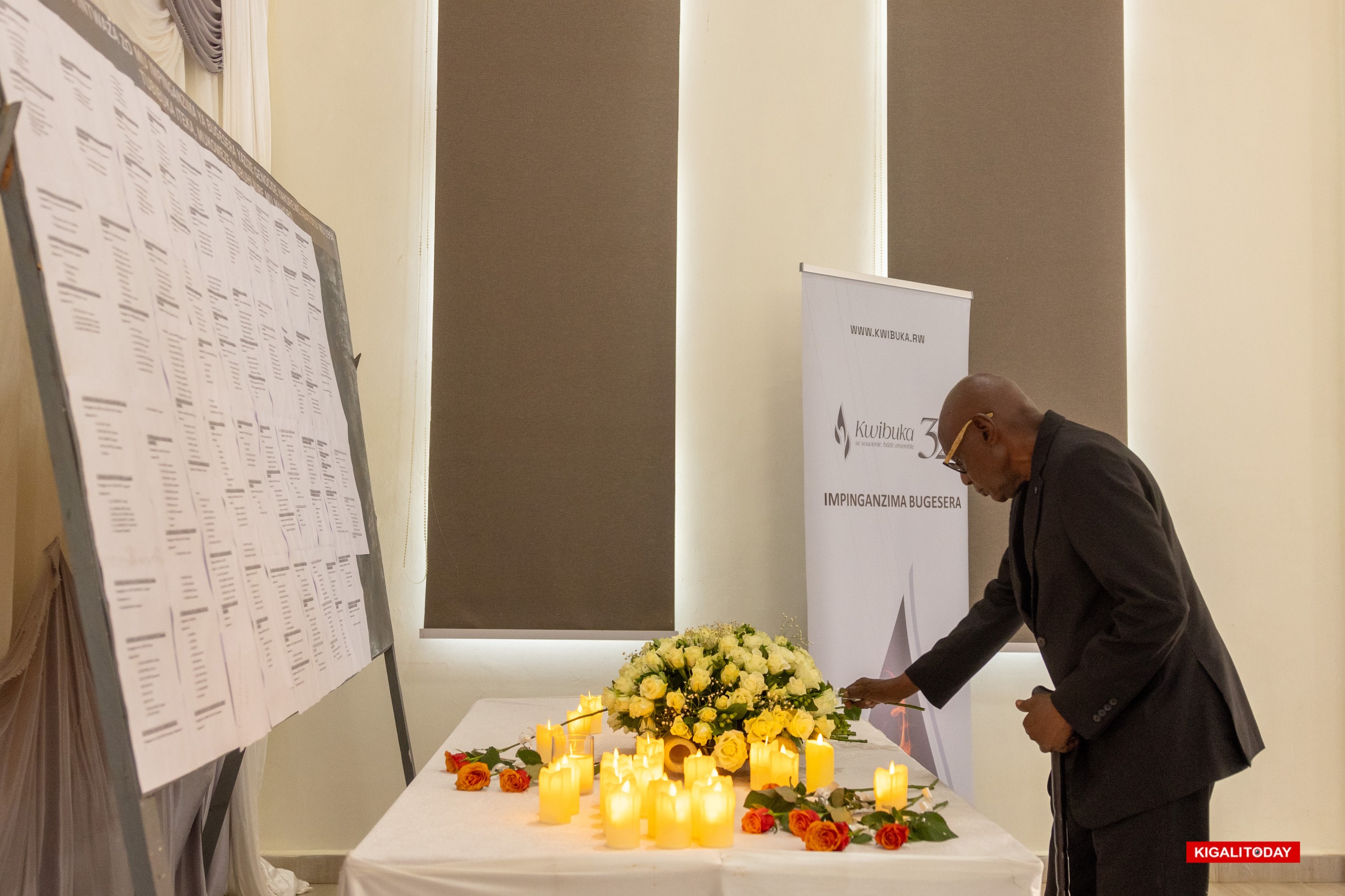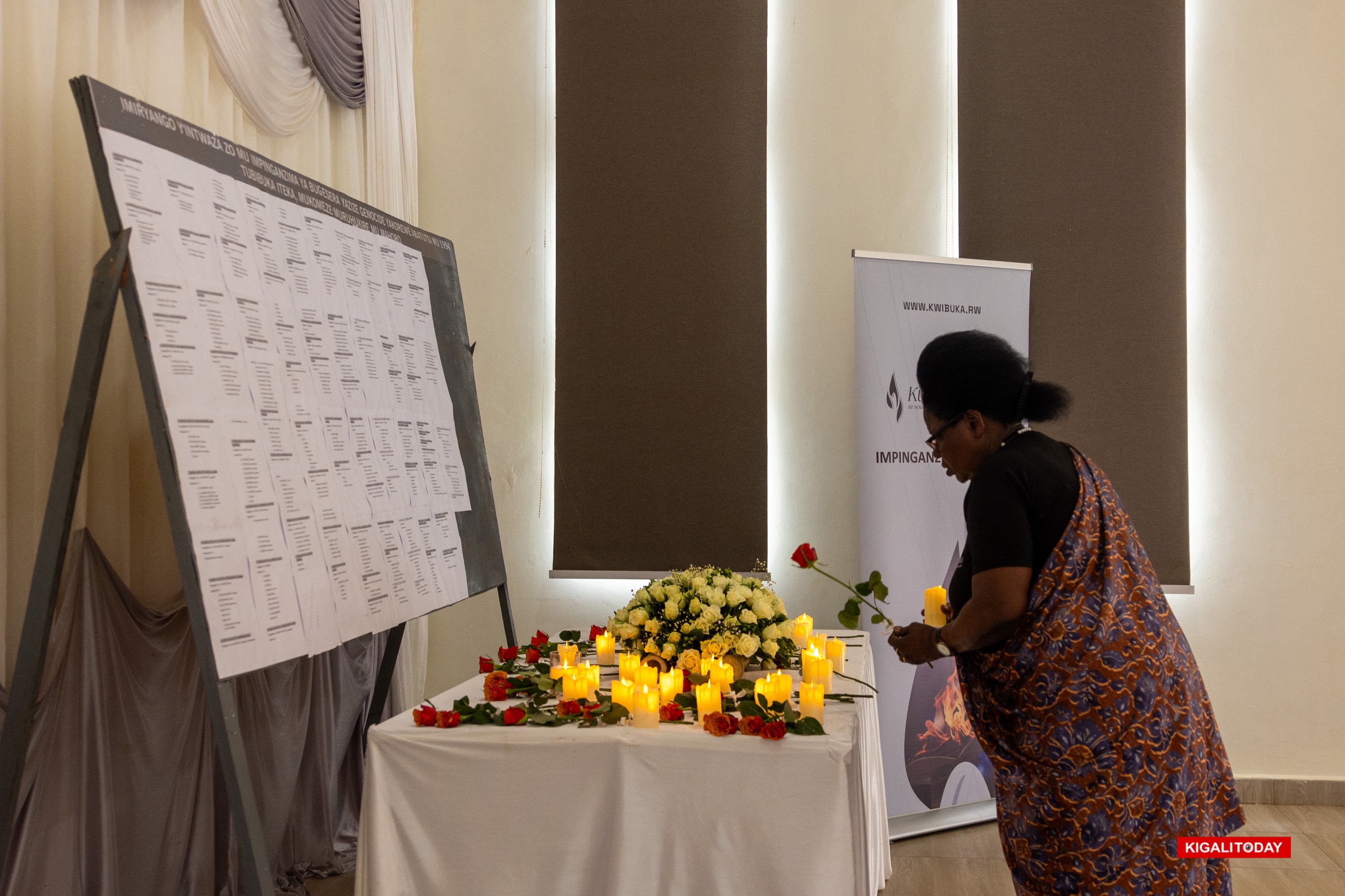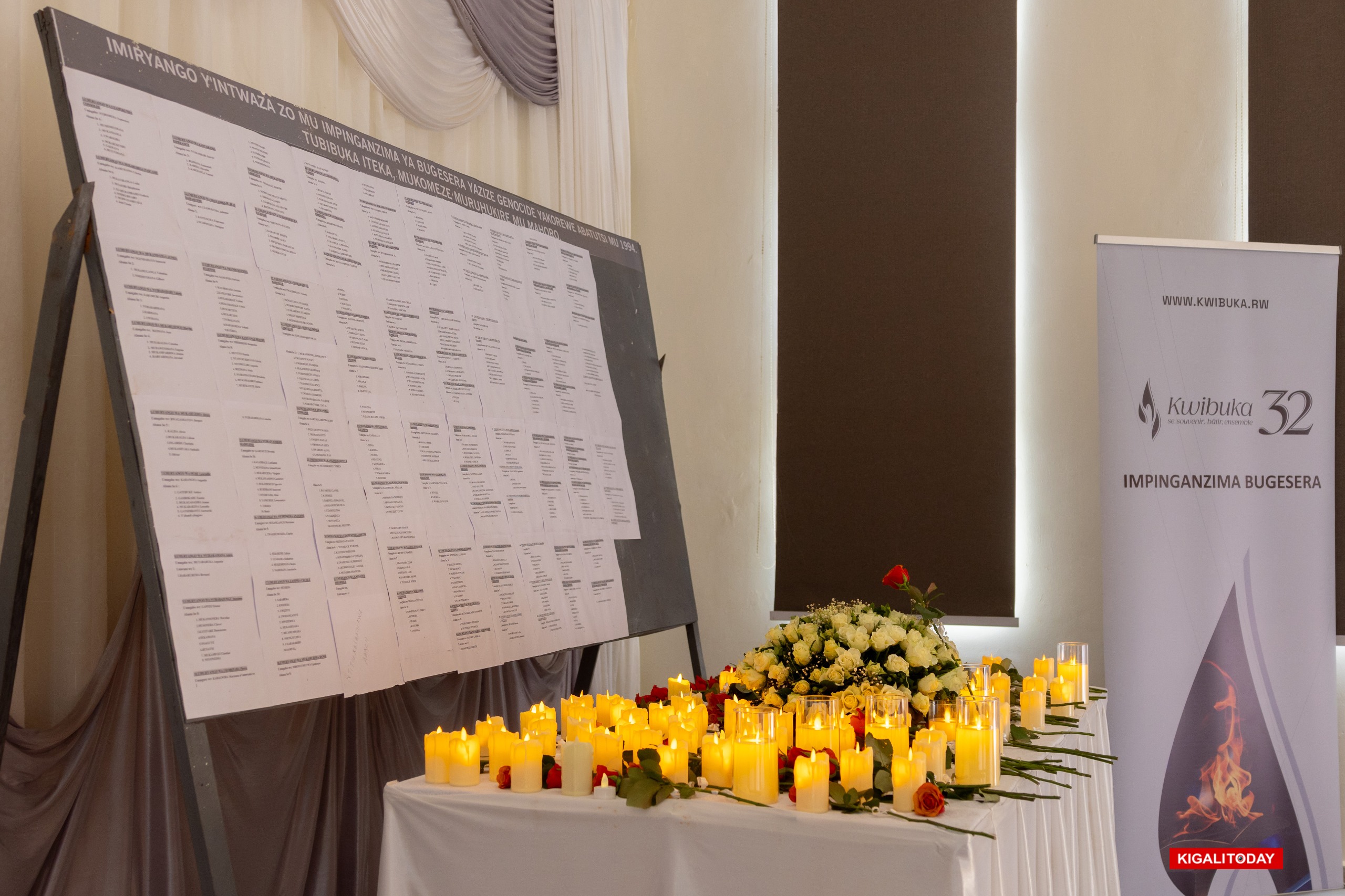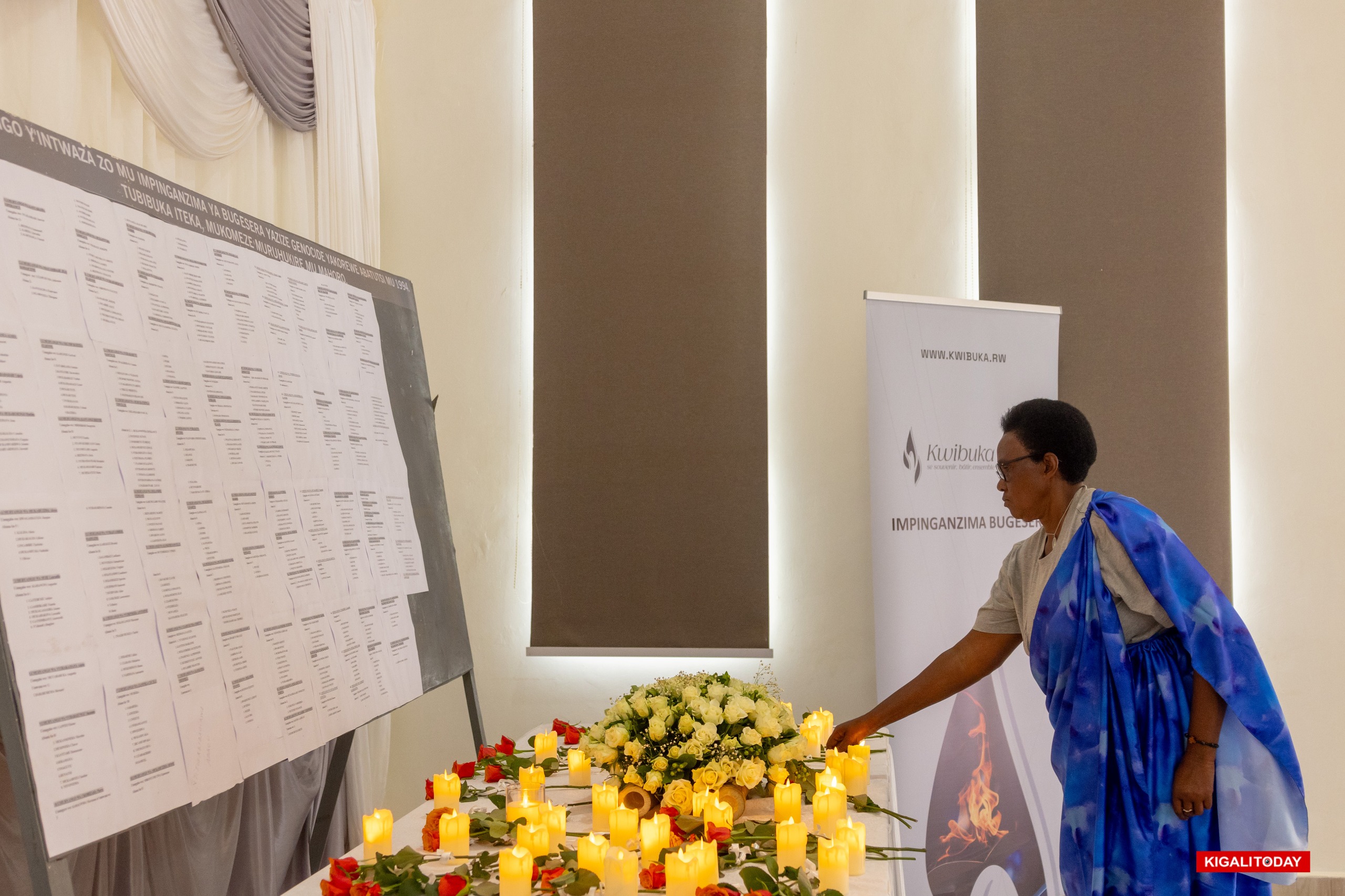 During the commemoration, the names of more than 500 genocide victims whose surviving family members now live in Bugesera were read aloud. Family representatives held flameless candles, which they placed on a table beneath a wall inscribed with many of the victims’ names.